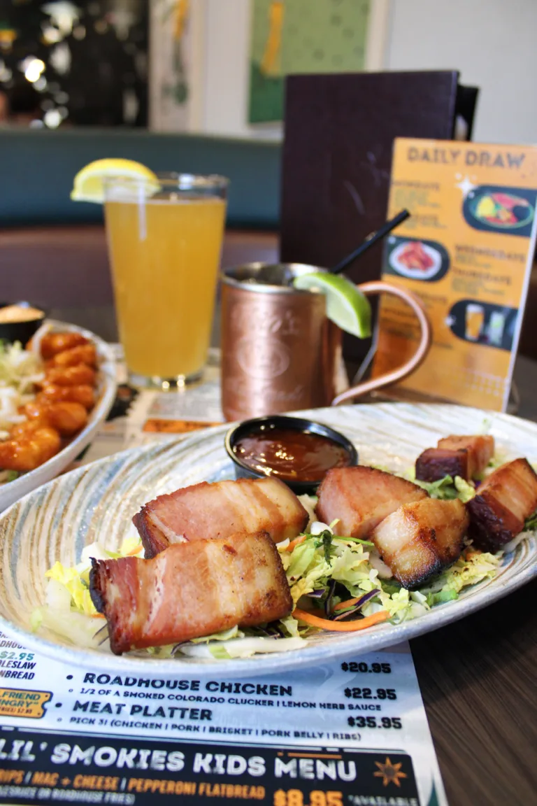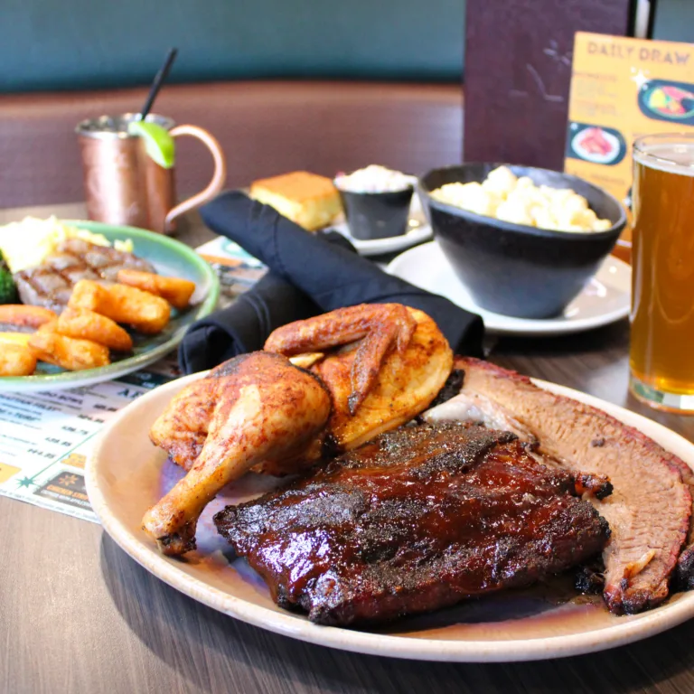 Welcome to The North Star Roadhouse — your new go-to hangout for great food, cold drinks, and nonstop fun. Our smokey, flavor-forward menu features local meats slow-cooked in our Southern Pride smoker, serving up that perfect roadhouse taste. Gather your crew to enjoy golf simulators, catch every game on the big screens, and sip on specialty drinks, mocktails, or a pint from our 20+ self-serve tap wall. Whether you’re here for a round, a meal, or a night out with friends, The North Star Roadhouse delivers bold flavors, good times, and that signature Northwoods vibe.